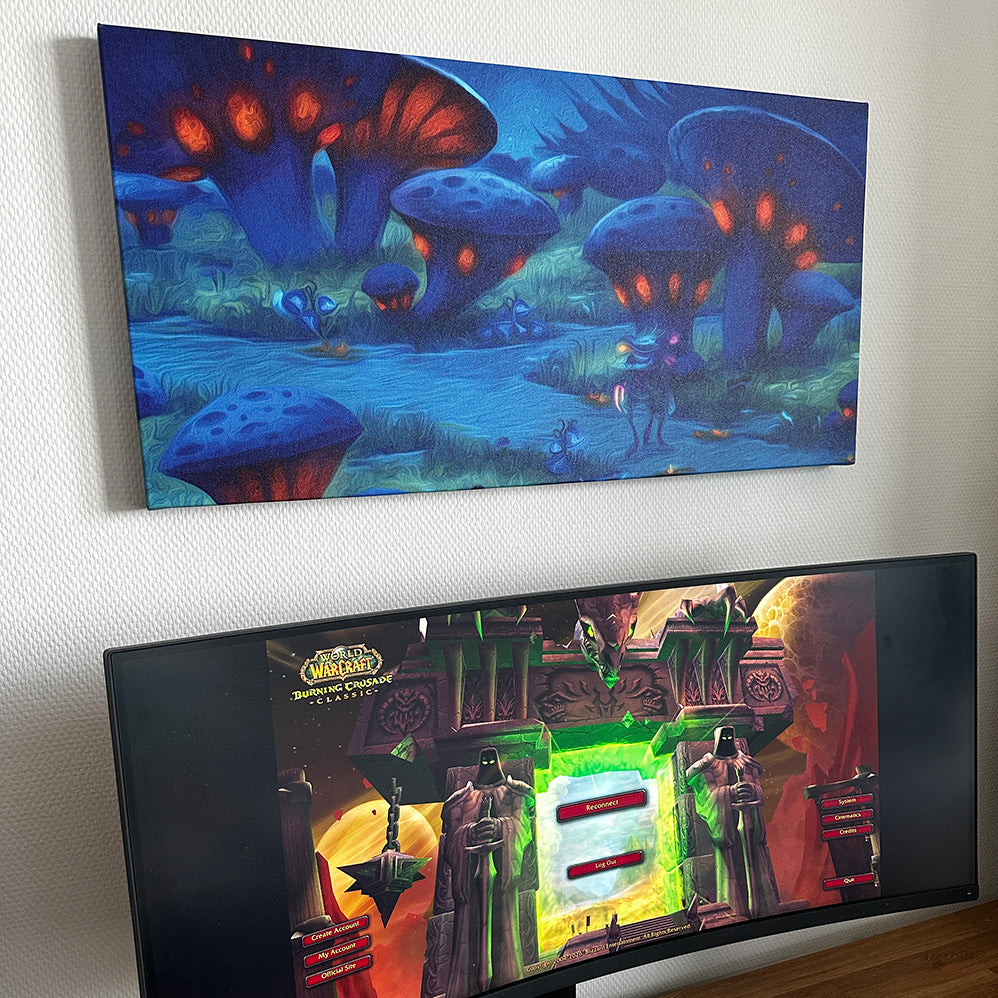 Each piece is made using a digital art process, where World of Warcraft inspired visuals are carefully edited and styled to capture the nostalgia and magic of Azeroth, then printed on high-quality canvas.